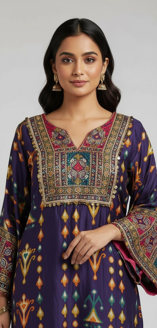 Pink & Dark Purple Embroidered Kurta With Tulip Pants