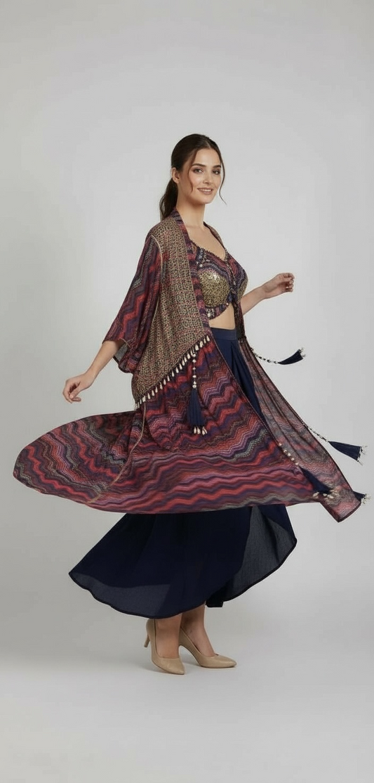 Multicolour Patchwork Top & Skirt Set with Embellished Yoke