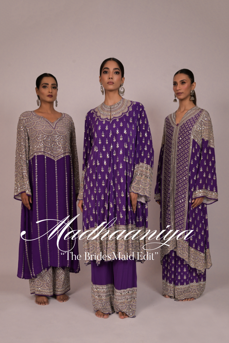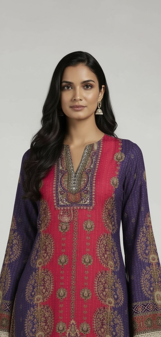 Pink & Dark Purple Embroidered Kurta With Tulip Pants