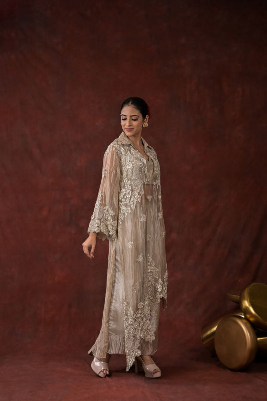 Ethereal Bloom silver Co-Ord Set
