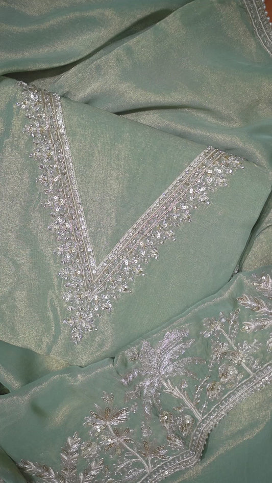Emerald Feather Tissue Dori Embroidered Kurta Set