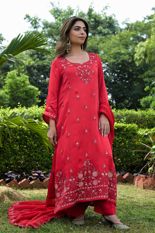 Scarlet Glow Satin Organza Kurta Set