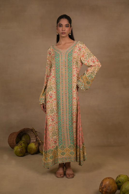Meher Aqua Floral Long Kurta Set