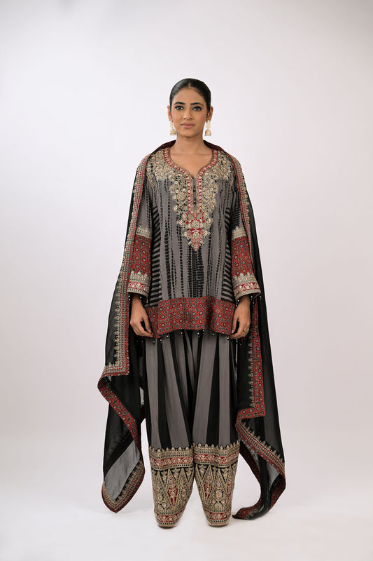 Charcoal Garnet Embroidered Kurta Set