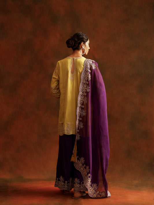 Yellow Peplum Kurta with Gharara Pants
