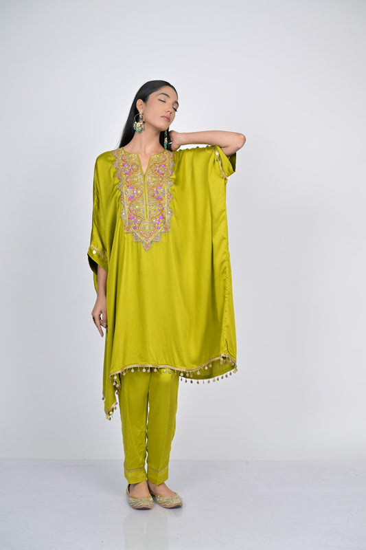 Green Embroidered Kaftan Set