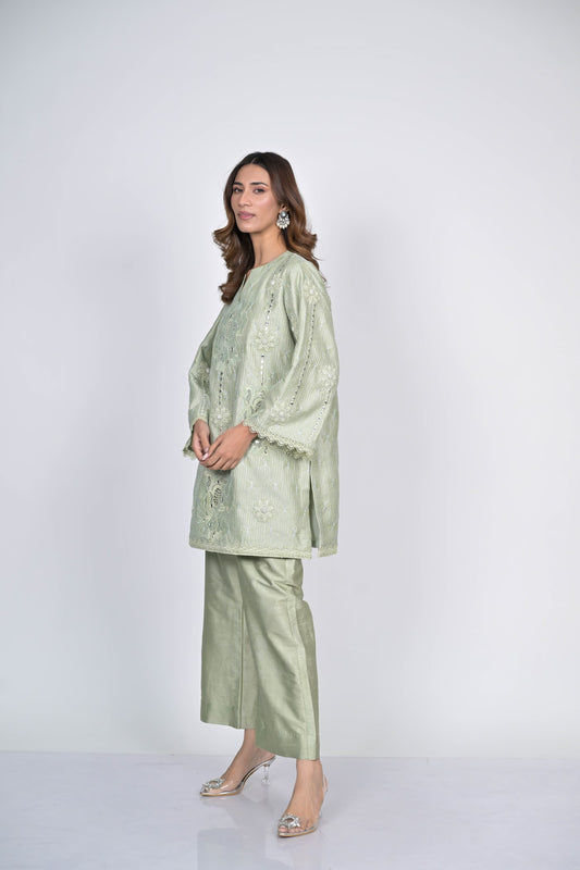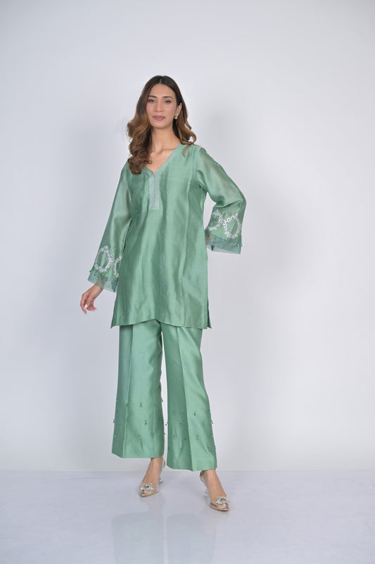 Sage Green Embroidered Kurta and Pants Set