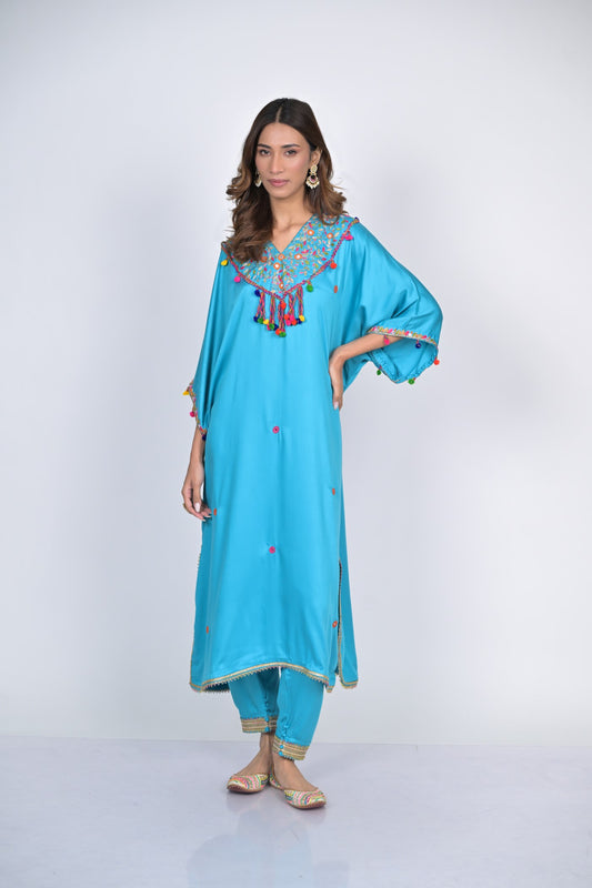 Blue Embroidered Kaftan Set