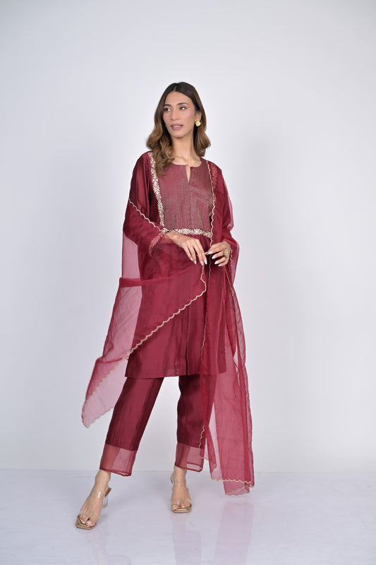 Maroon Sheer Dupatta Kurta Set