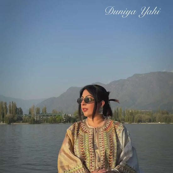 A timeless expression of grace and heritage, this elegant ivory ensemble features intricate multicolour thread embroidery beautifully adorning the neckline and bodice. The relaxed kaftan-style silhouette with wide sleeves adds effortless sophistication, while the subtle sheen of the fabric enhances its regal charm. Perfect for intimate gatherings, festive celebrations, and destination occasions, this outfit blends traditional craftsmanship with contemporary ease.