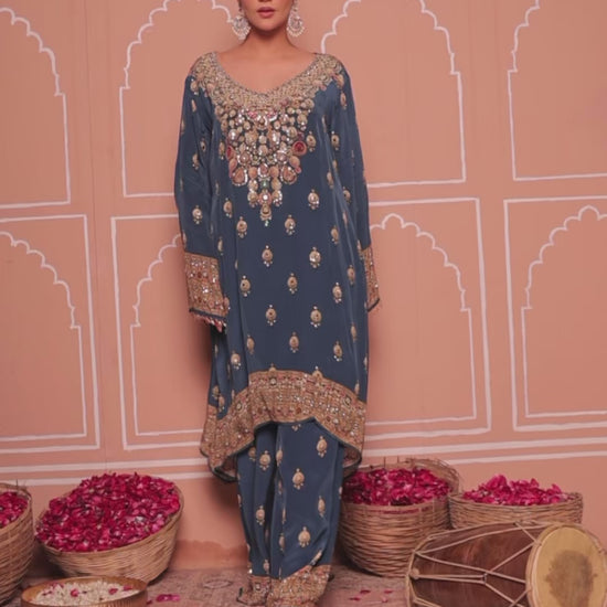 Blue Crepe Digital Print Kurta Set