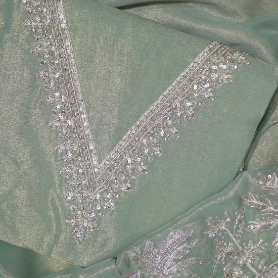 Emerald Feather Tissue Dori Embroidered Kurta Set