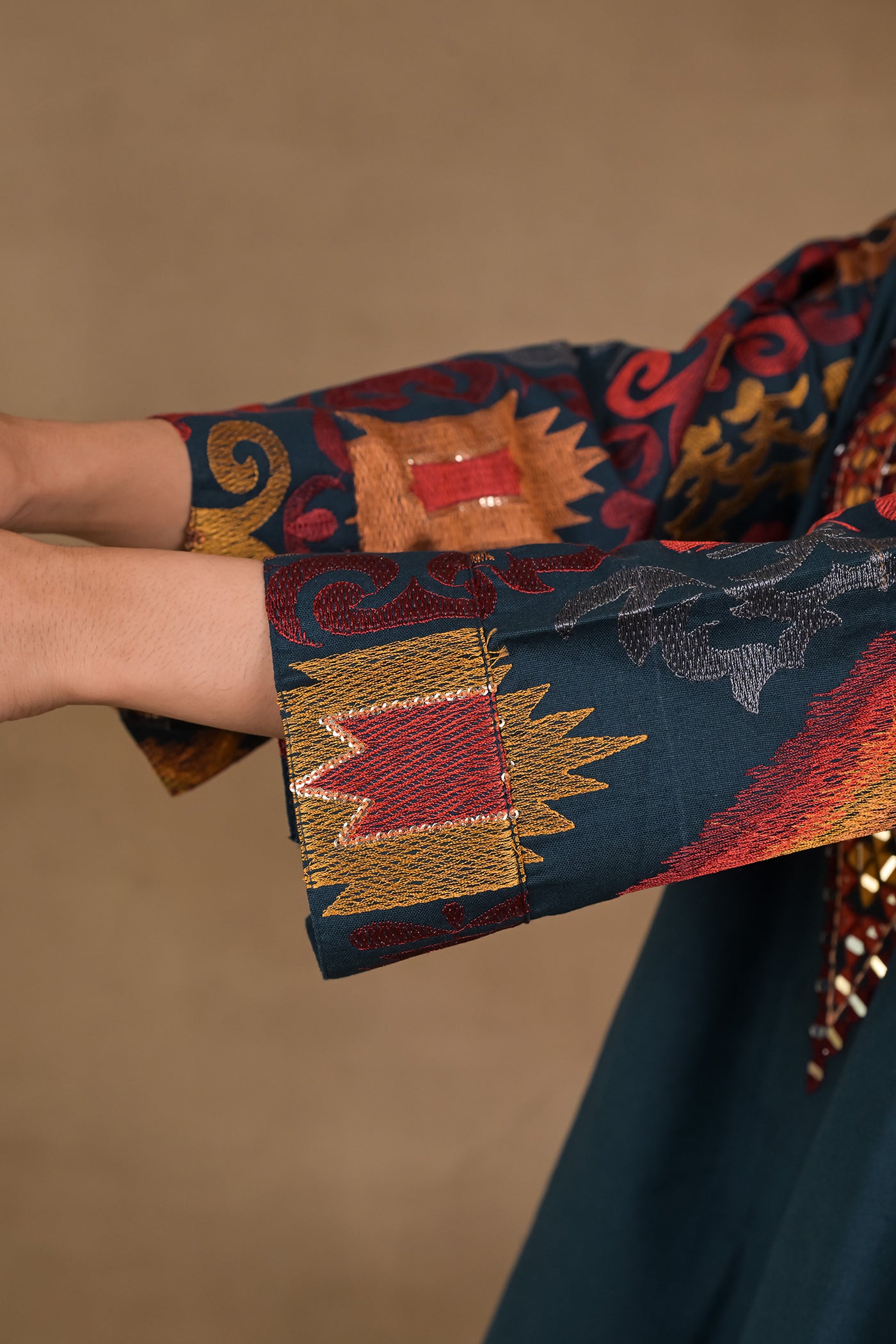 Work/Embroidery - MIRROR WORK , DIGITAL PRINT TASSELS ON SLEEVE
