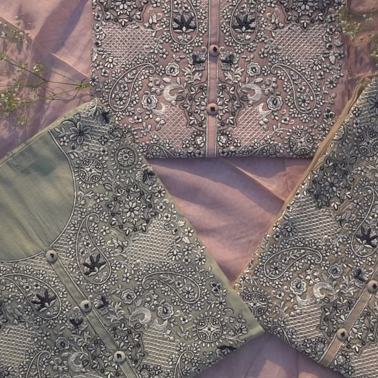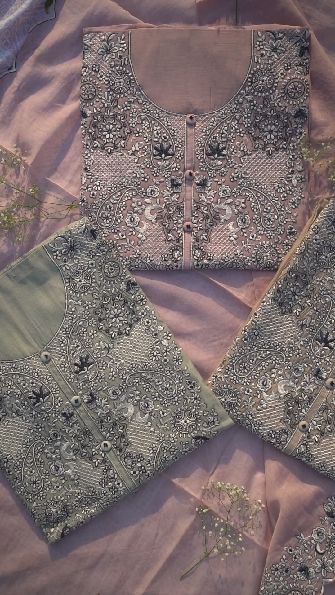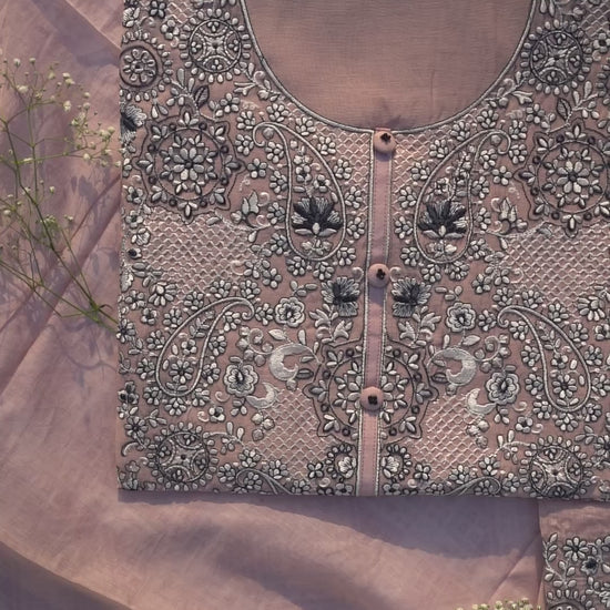 Soft, graceful and effortlessly feminine — this blush tones mul ensemble is designed for easy summer elegance. Featuring delicate floral embroidery on the neckline, the breathable mul fabric keeps you cool while adding a refined handcrafted charm.